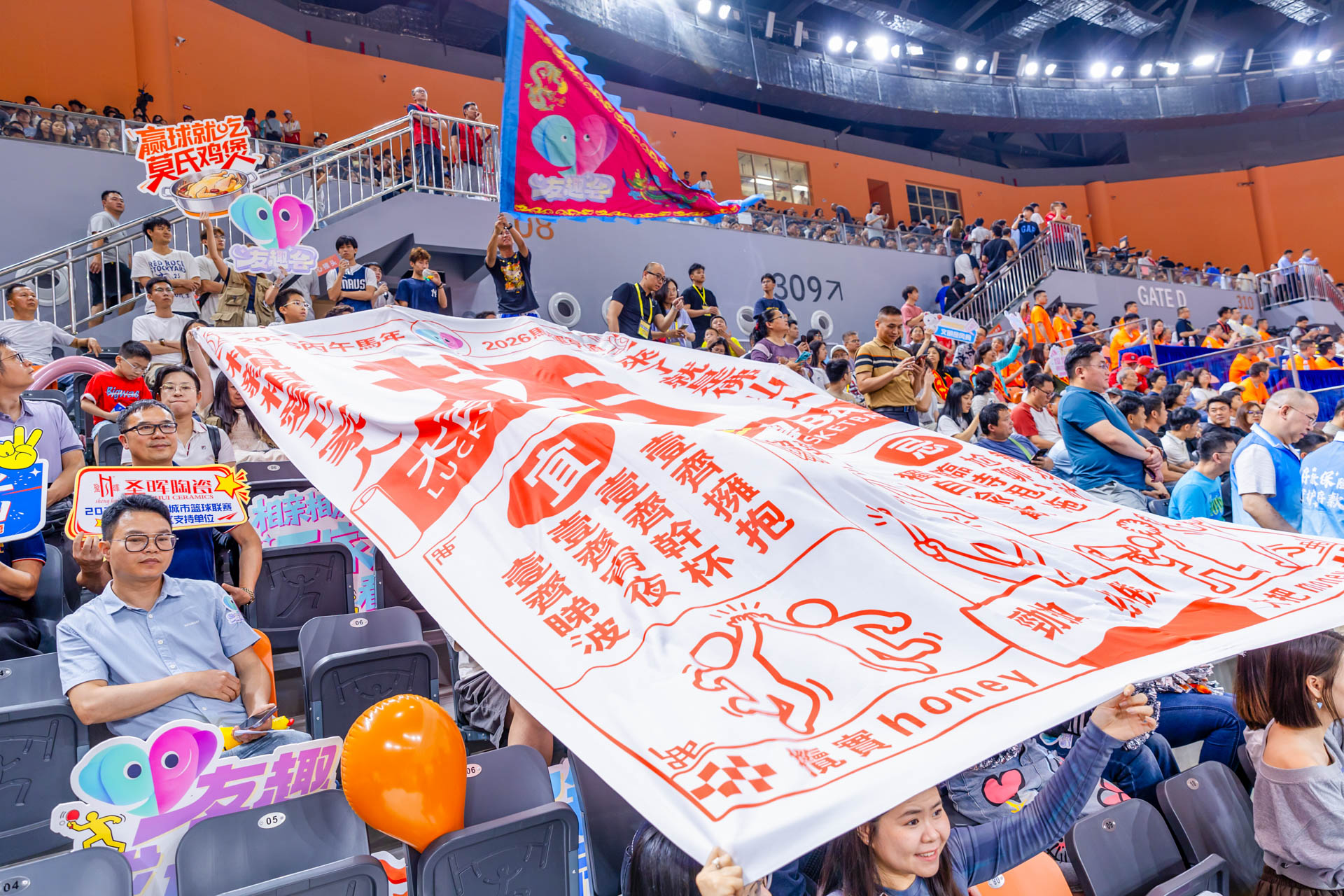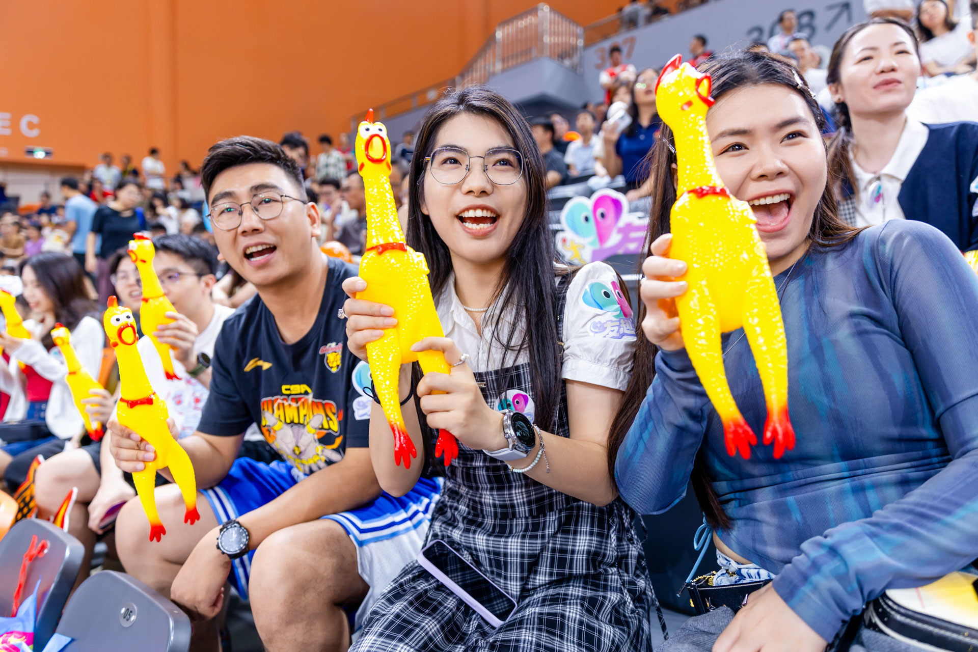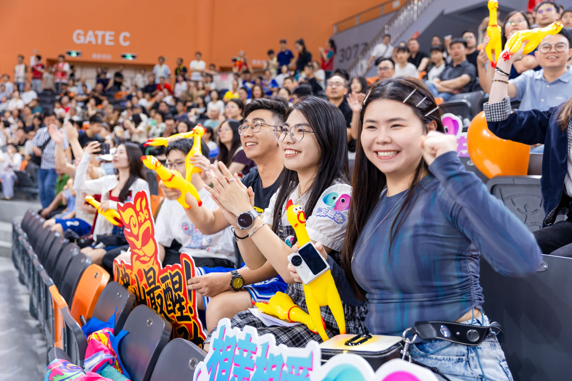 4月18日晚,粤BA佛山队主场开战,憾负劲旅中山队。现场,友趣会打造的“相亲相爱E家人”专属看台,集结佛山、中山青年以球会友,共叙两地兄弟情。尖叫鸡趣味应援、鸡腿姑娘活力热舞,联动本土美食IP“莫氏鸡煲”,点燃赛场氛围。这帮年轻人以篮球为纽带,解锁同城社交新玩法,用双向奔赴诠释了“相亲相爱E家人 来了就是佛山人”的温度和趣味。
