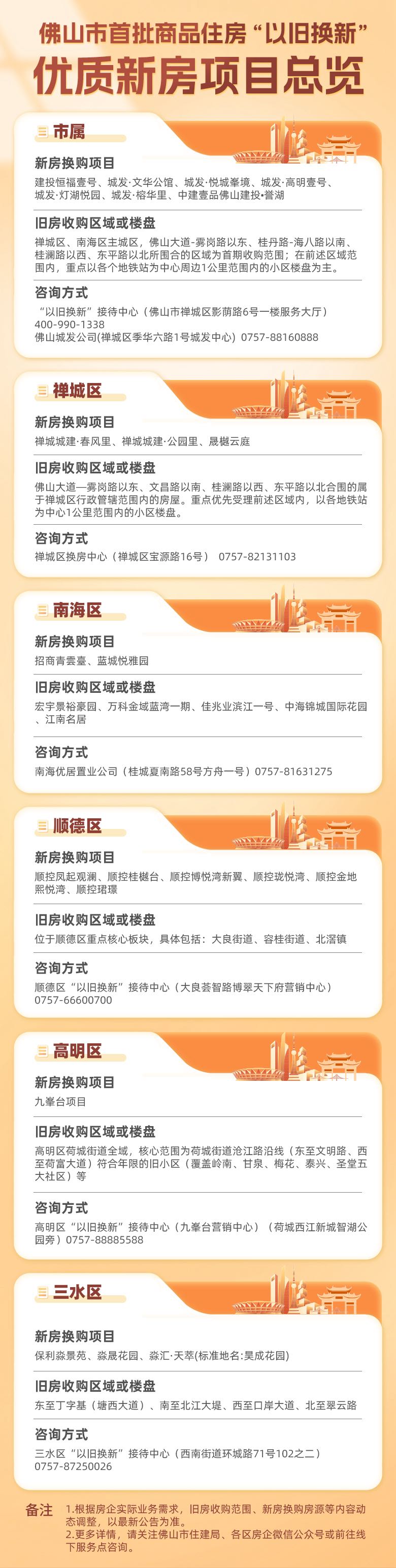 更多商品住房“以旧换新”资讯可打开「佛山住建」微信公众号→底部菜单栏点击“业务办理” →进入“商品住房以旧换新”专区浏览。