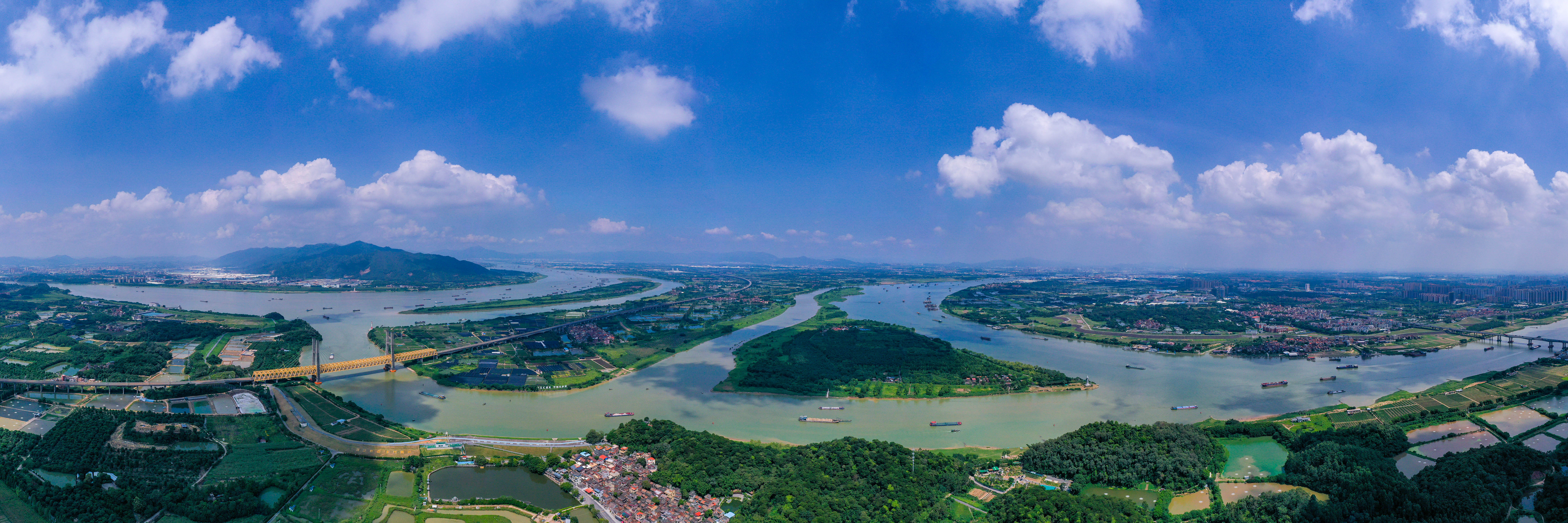 西江,中国第二阶梯上的巨龙,从云贵高原俯冲而下;北江,从第三阶梯的南岭山脉倾泻而出;绥江,从肇庆方向奔腾而至。