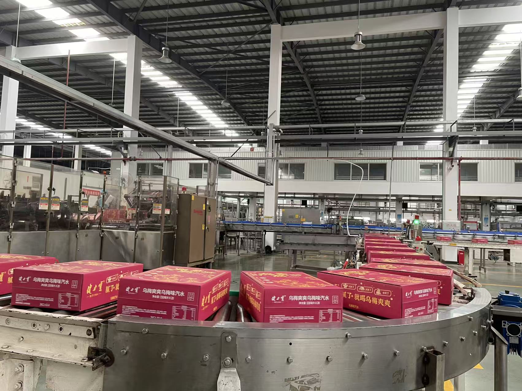 广东健力宝股份有限公司车间内,乌梅味汽水完成装箱。三水融媒记者何艳纯摄