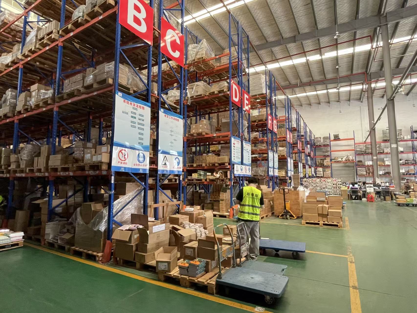 运到供应链管理有限公司仓库内,工人正在作业。三水融媒记者何艳纯摄