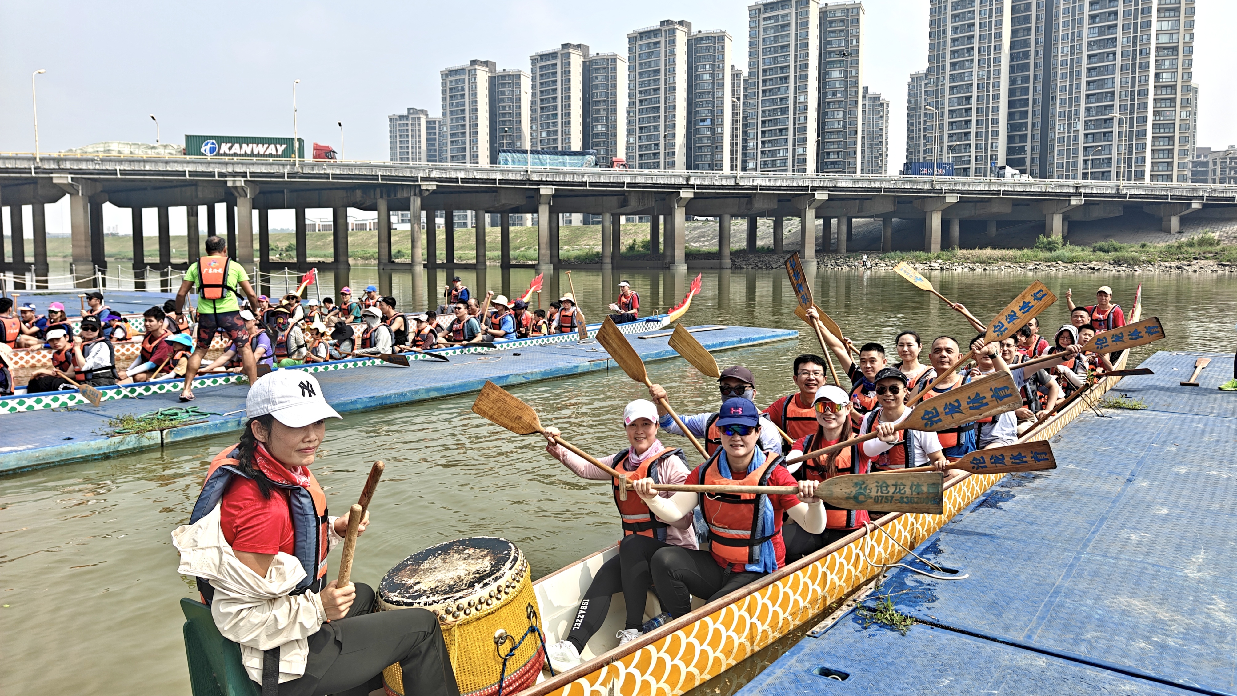 上午八点半,五区青年队伍陆续集结就位。队员们精神抖擞、行动有序,严格落实安全规范,逐一完成船体检查、装备核验、救生衣穿戴、水上安全热身等全套赛前准备工作。河岸沿线市民群众驻足围观、拍照打卡,欢声笑语此起彼伏,烟火气与运动氛围感拉满。