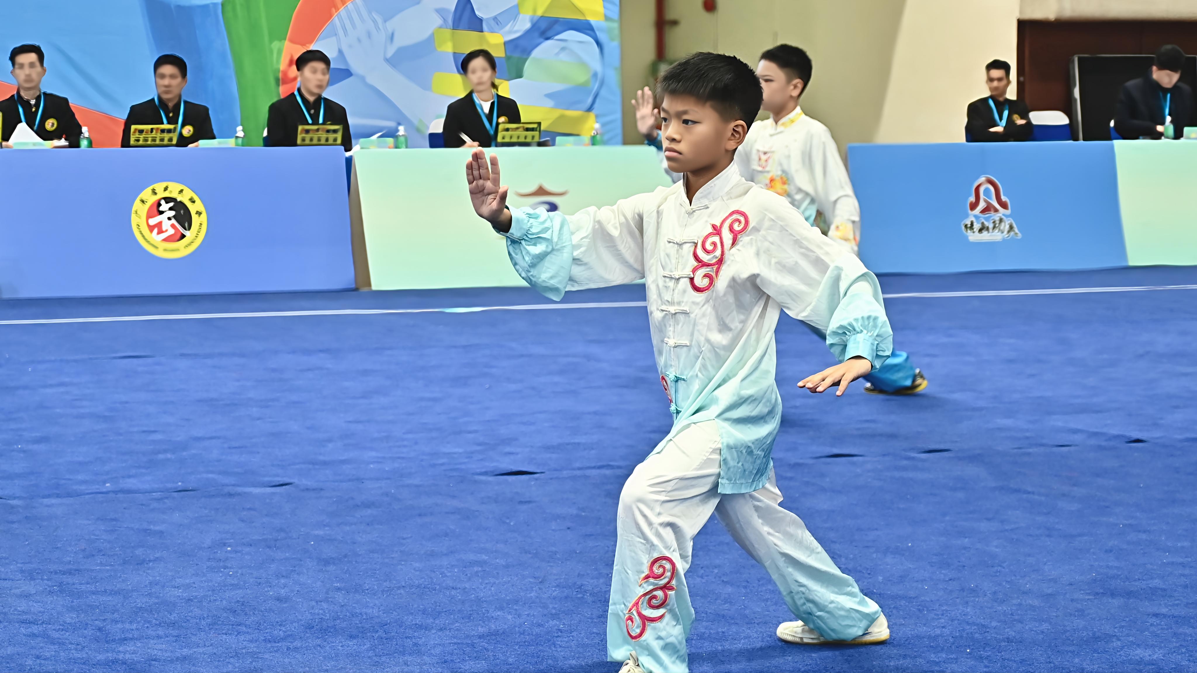 本次大赛汇聚全省及港澳300支参赛队伍、近3500名运动员同台竞技。赛事组别设置全面,精准覆盖全年龄段习武群体,共设儿童组、少年组、甲组、大学生组、中青年组、老年组男女各6个组别。竞赛项目品类丰富,涵盖拳术类、短器械、长器械、双人及集体对练等多个门类,洪拳、咏春、蔡李佛、太极拳等极具岭南特色的传统拳种集中亮相,全方位展现南派武术的精妙招式与深厚文化内核。