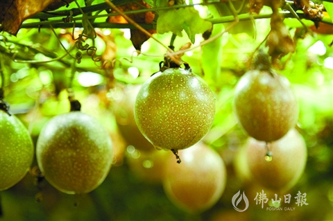 健农葡萄庄园内,成熟的百香果已经挂满枝头,饱满多汁。