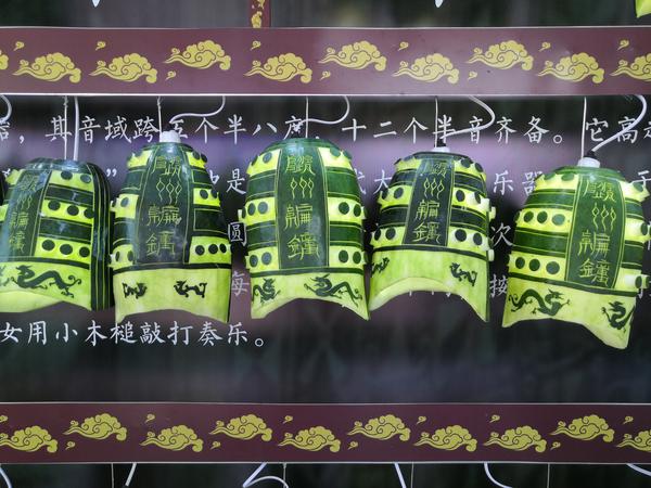 “Happy冬瓜”文化节上的冬瓜编钟备受市民关注和喜爱。佛山日报记者梁欣莹摄。