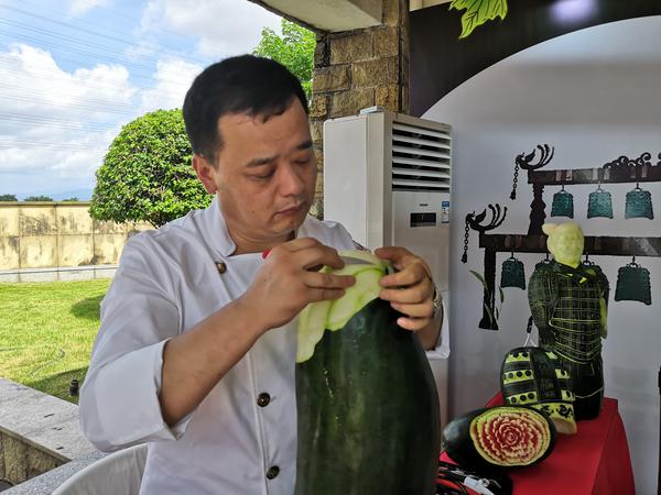 “Happy冬瓜”文化节上,文创工作者现场雕刻冬瓜艺术品。佛山日报记者梁欣莹摄。