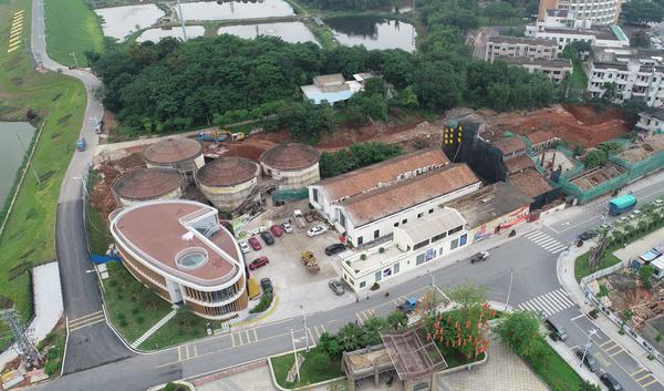 文创古镇坐落于西江畔,创意良仓(左侧)主体建筑工程已完成,旁边的连片建设工程正加紧开展。白坭镇供图。