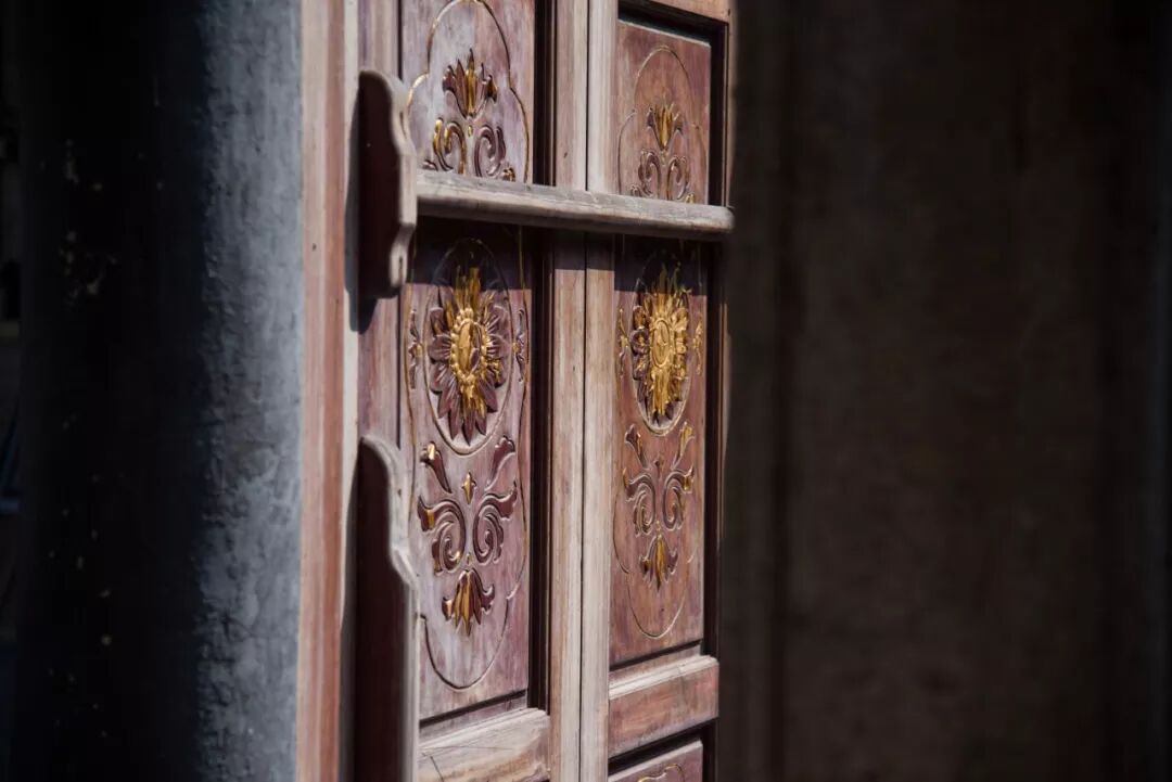 斜阳照射进蔡氏大宗祠,让斑驳的木质门更显质感。