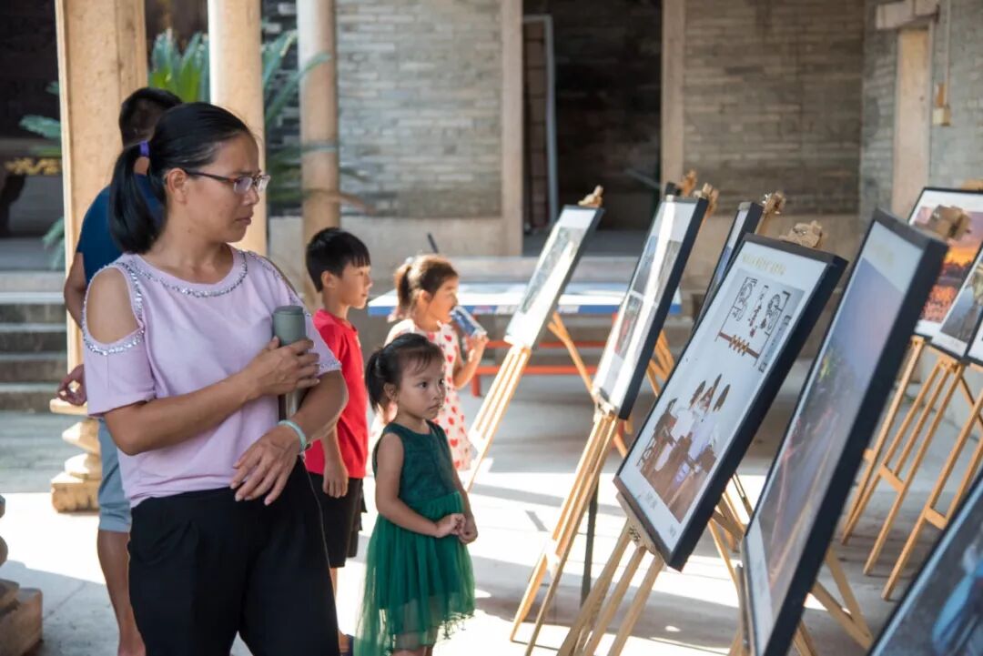 蔡氏大宗祠内举办摄影展,吸引了村民来观赏。