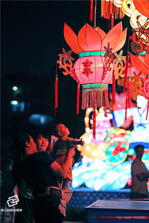 2015年的中秋节,市民在映月湖公园欣赏荷花大宫灯。映月湖公园自建成以来,成为市民节假日休闲的好去处。人居环境提升,市民得以享受城市发展的成果。