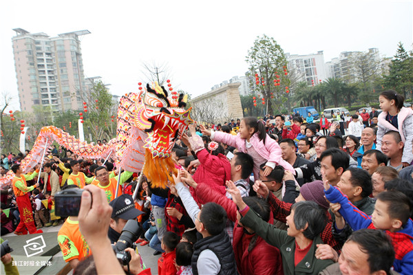 2015年3月,市民在映月湖公园看新春武术龙狮汇演。映月湖公园丰富了市民的文化生活。