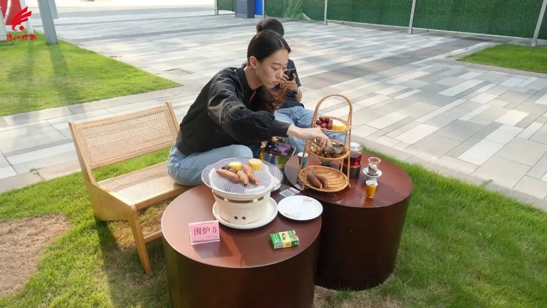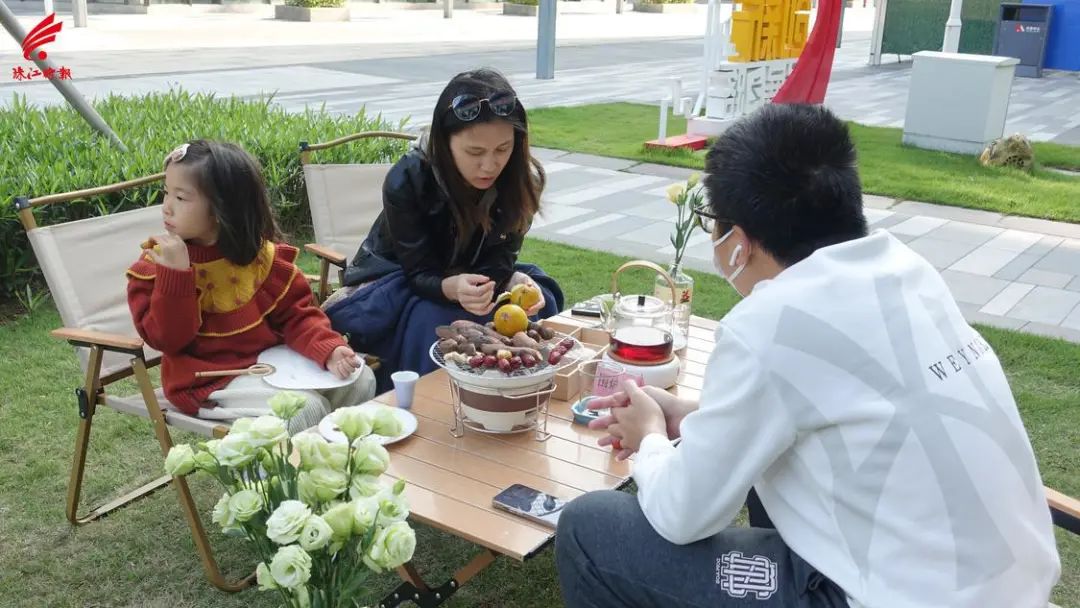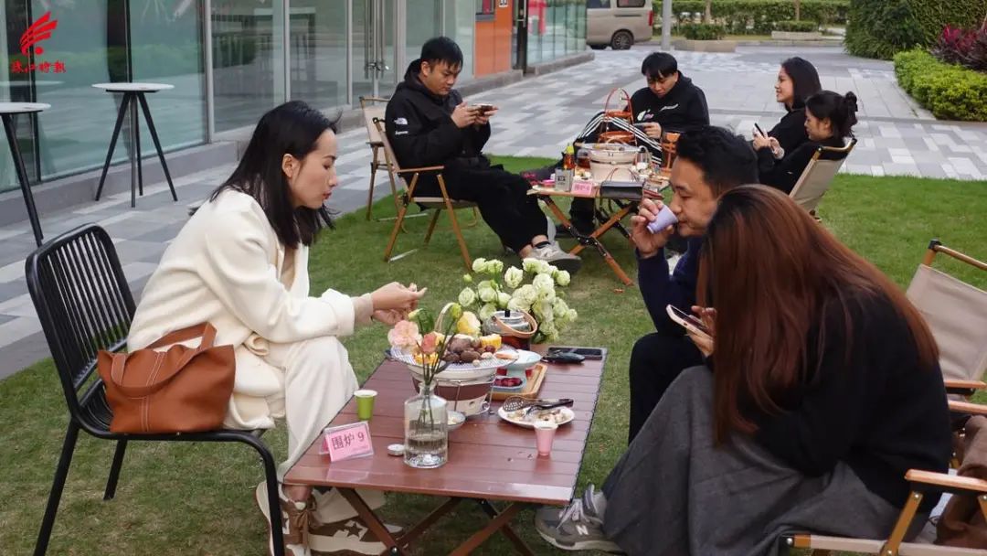 她说,佛山是个节奏不紧不慢的城市,这种在蓝天白云下,坐在草坪上,和家人朋友聚在起用炭火煮茶、烤小吃的方式,或许刚好就满足了桂城年轻人对“精致感”和“松弛感”的追求。