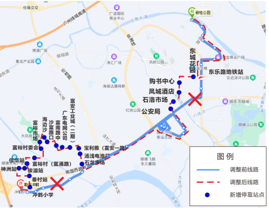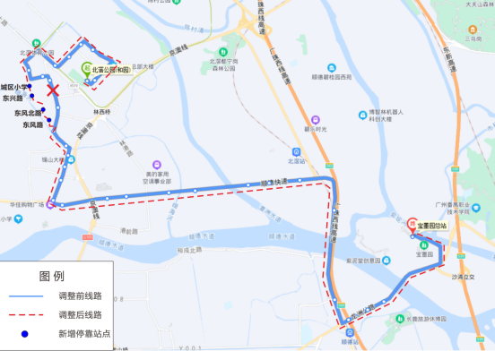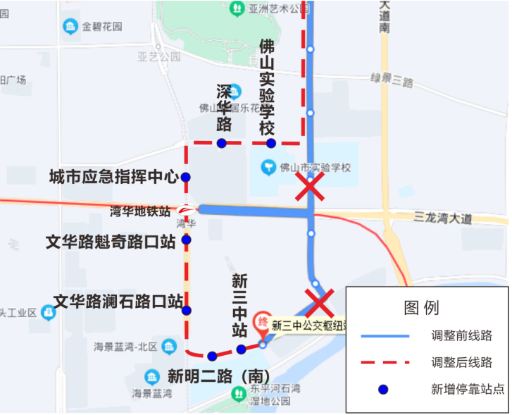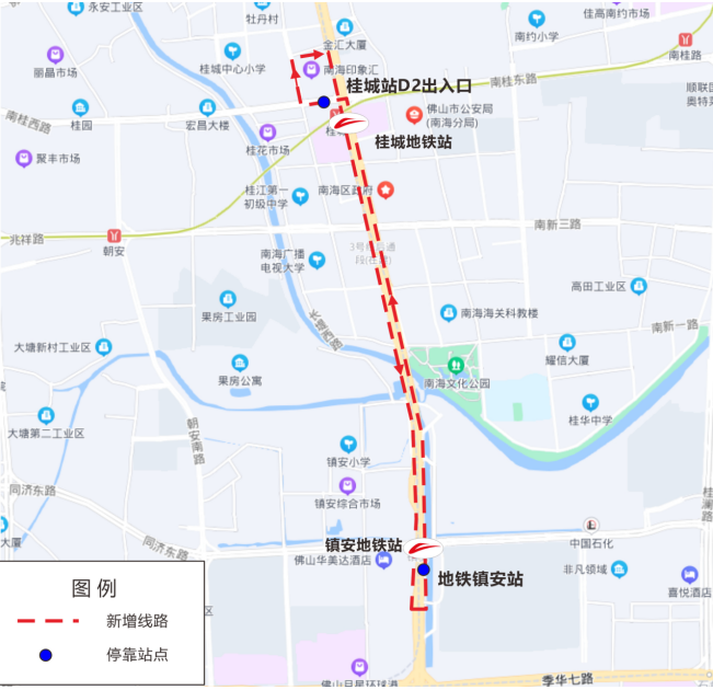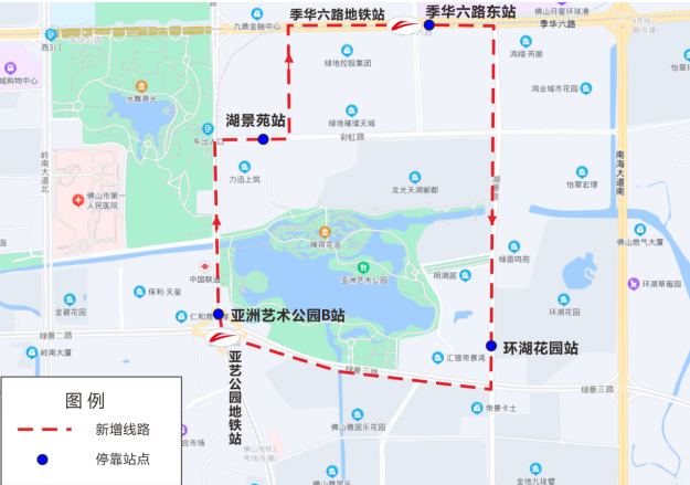 功能说明:该线路开通后可衔接3号线季华六路站、亚艺公园站,满足招商臻园、绿地璀璨天城、环湖花园等地市民搭乘3号线需要。