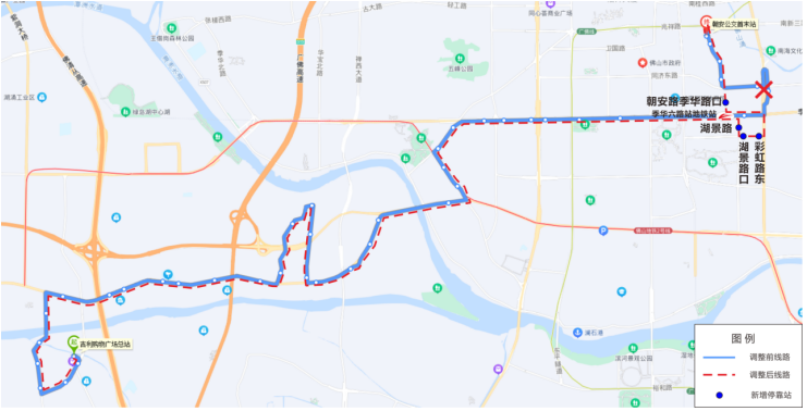线路路由:季华六路-湖景路-绿景三路-文华中路-彩虹路-彩虹二街