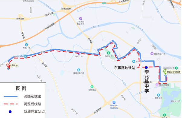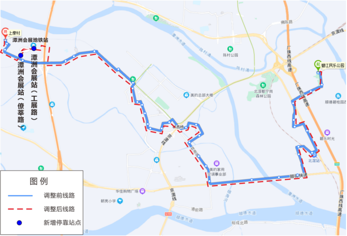 该线路调整后可加强潭洲片区与轨道交通三号线潭洲会展站衔接,方便市民乘坐地铁。
