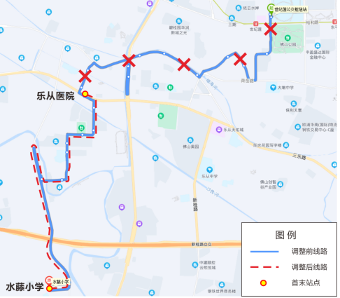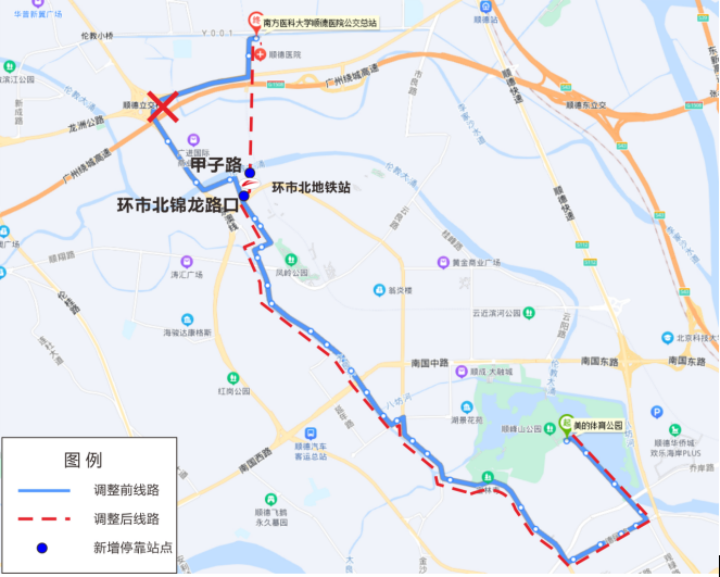 339路由原“南方医科大学顺德医院公交总站-三桂沙埠塘公园”截短至“广珠城轨北滘站-三桂沙埠塘公园”,上述路段沿线站点相应取消停靠;发班密度、运营时间等均保持不变。