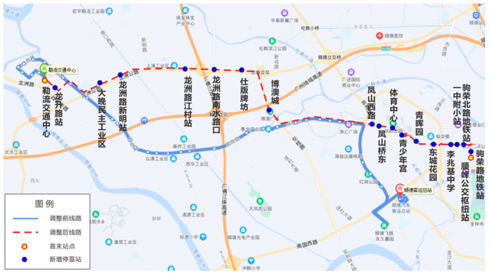 该线路调整后可加强勒流与轨道交通三号线东乐路站衔接,方便市民乘坐地铁,同时减少线路绕行。