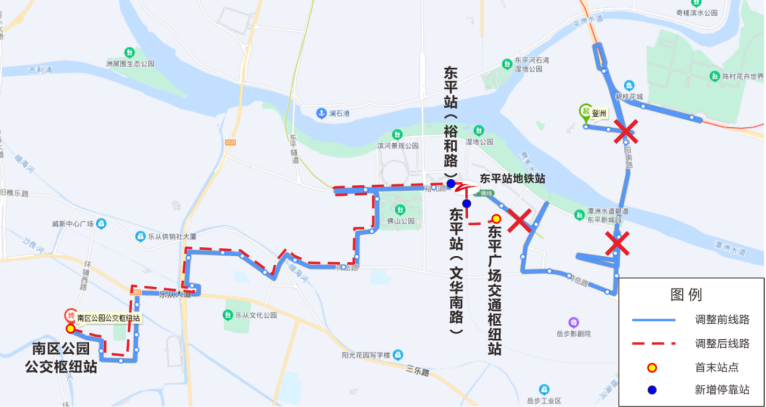 391路调整前后线路走向示意图