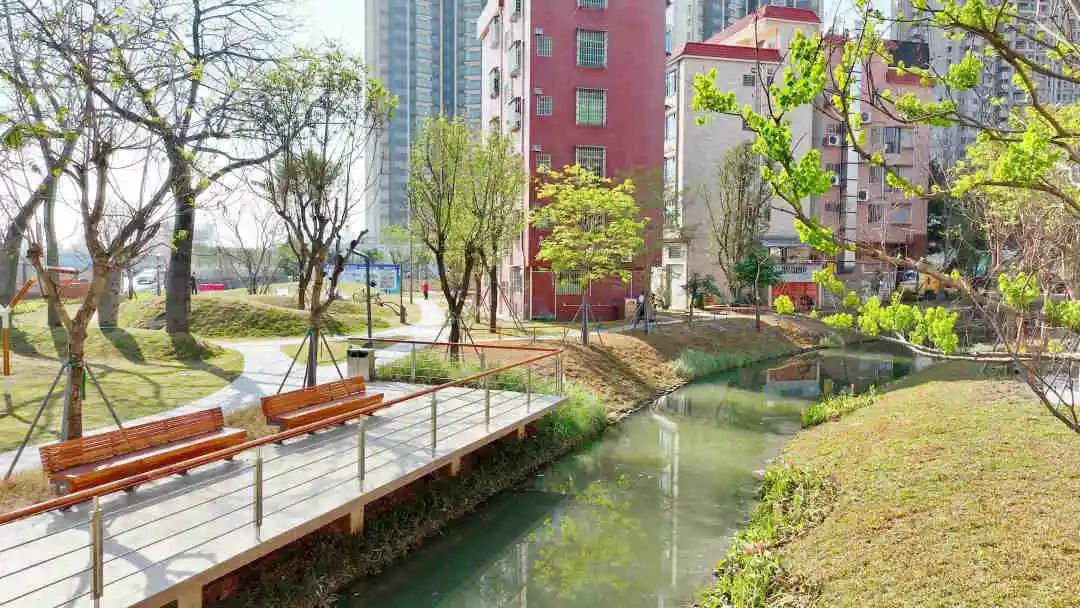木趣森林公园便在这种背景下应运而生。本次改造工程,在改善河道生态环境的同时,将河岸空地打造成人水相亲、生态娱乐的社区公园,扮靓了老百姓家门口的“滨水空间”,以治水带动兴城,促进城市环境品质迈上新台阶。