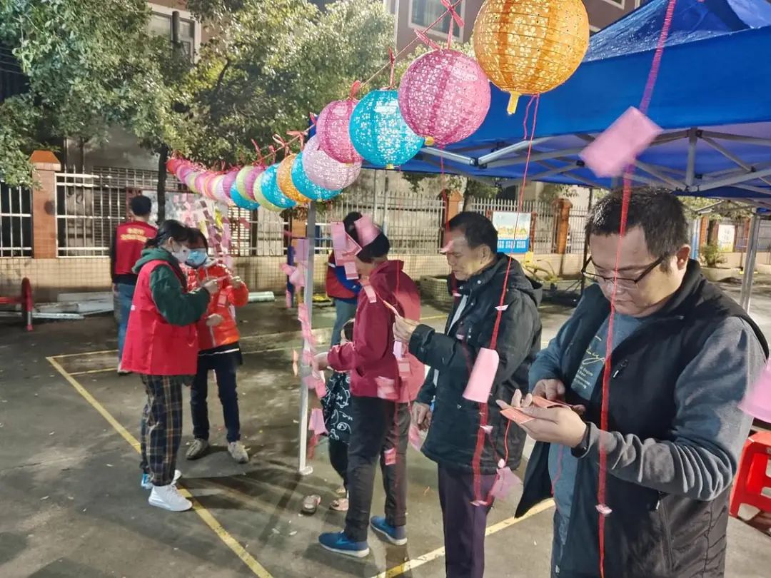 2月3日,七星村举办元宵游园活动,游园现场设置了“游戏区”“灯谜区”两个个区域,在亲身体验的同时,也体会到过年欢快、愉悦的氛围。而另一边七一空间游戏区,志愿者们玩起了“抽取红包盲盒”、“解手环”、“卡牌加减乘除”、“数字炸弹”等多种游戏,丰富多彩的活动与玩法,不仅感受了传统艺术的底蕴,也获得了沉浸式游园体验。
