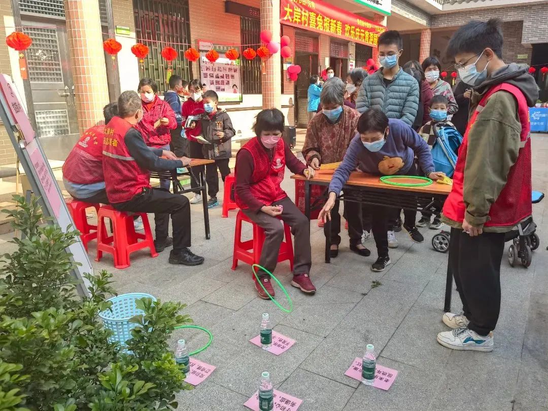 2月4日,新田村开展了“我们的节日·欢乐闹元宵”元宵游园会,现场十分热闹,设有多个游戏摊位。在套圈圈摊位,长者们会为套中的老友记喝彩,也会给没有套中的老友记鼓励。在猜灯谜摊位,长者们苦思冥想,互相献计,猜中后马上神采飞扬,开怀大笑。此外,现场还有义诊、义剪和政策宣传摊位。