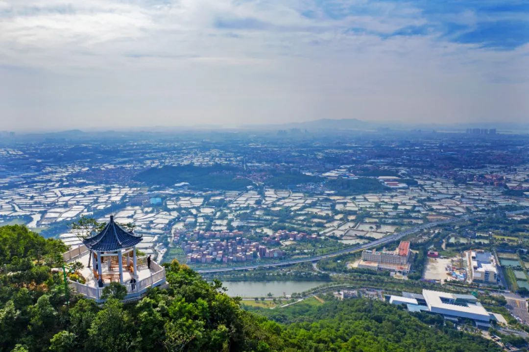 登顶西樵山鸡冠峰,万亩桑基鱼塘风光在你脚下,西樵城景一览无遗。