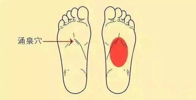 按摩方法:以对侧手掌揉搓足心涌泉穴处50-100次,左右交替,以涌泉穴有热感为宜。