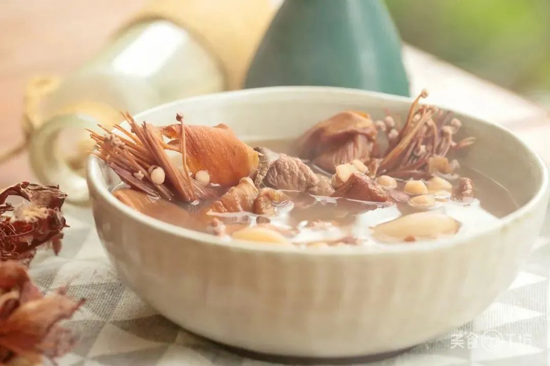 做法:猪瘦肉洗净,焯水。锅内加水煮沸,放入所有食材,大火烧开转小火煲45分钟,调味,即可饮用。