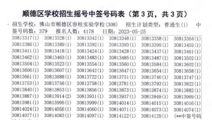 关注!容桂三所学校招生摇号结果“出炉”