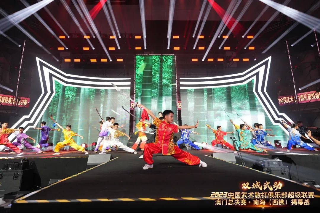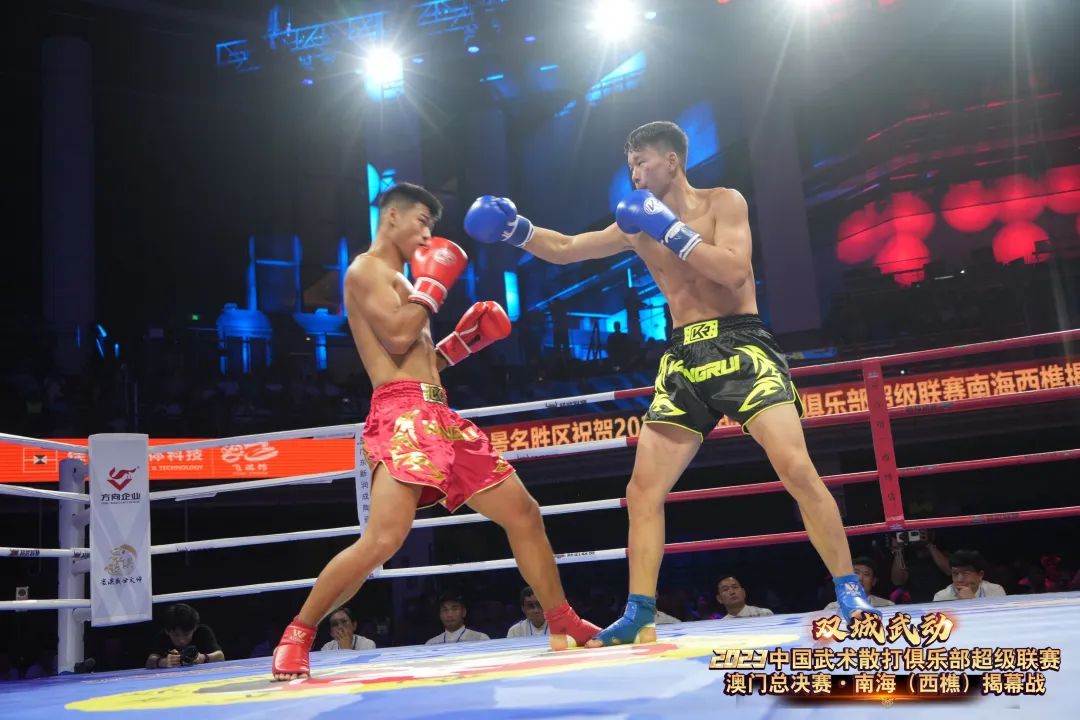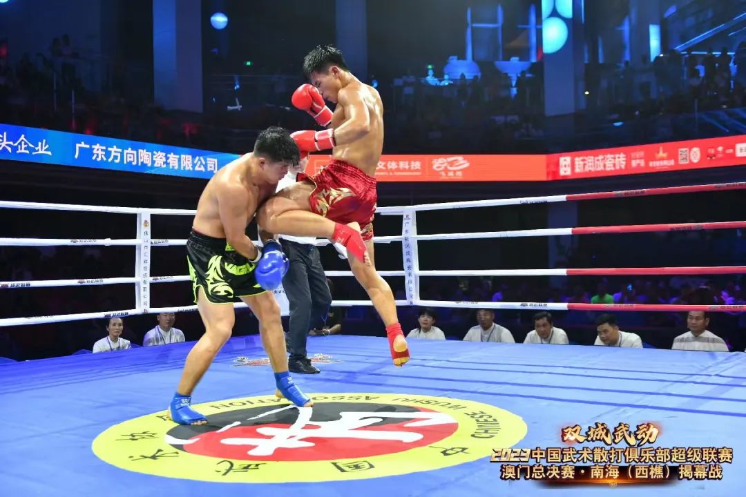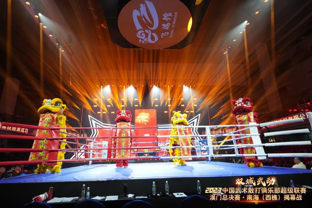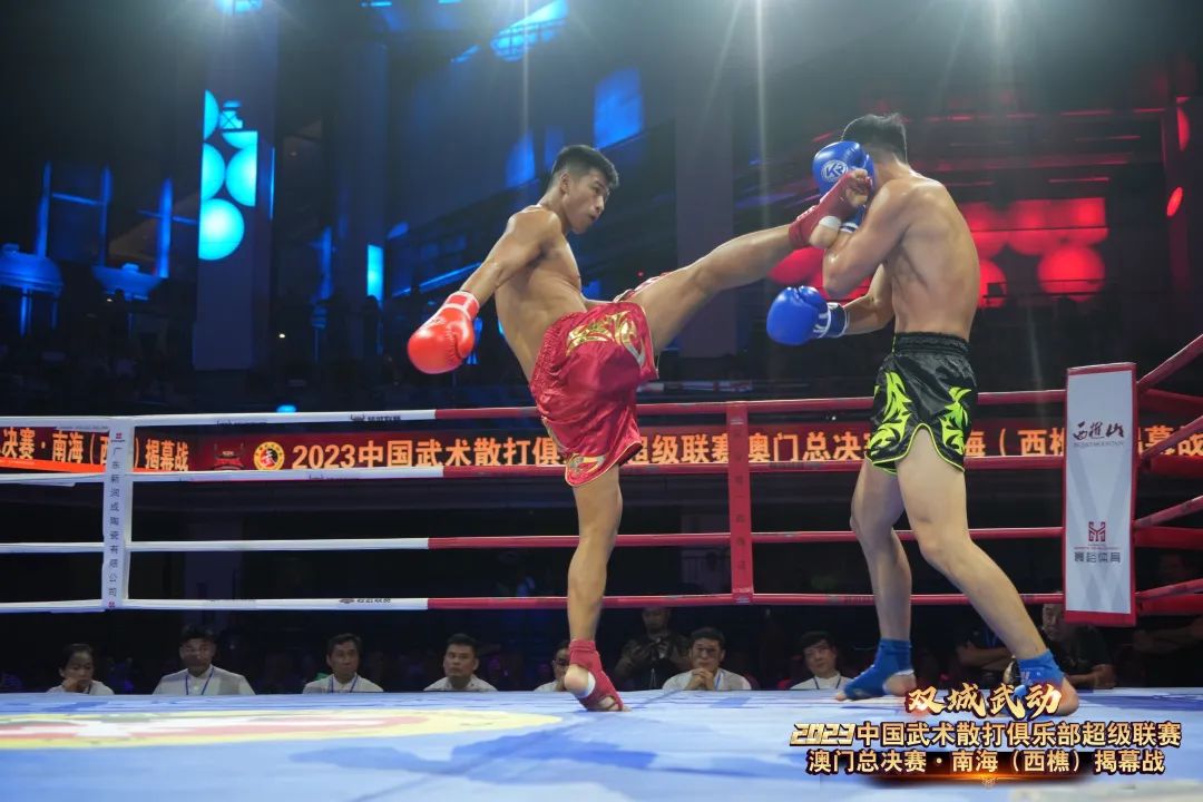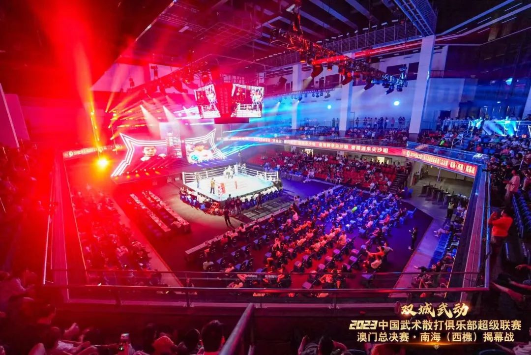 8月22日晚,“双城武动”2023中国武术散打俱乐部超级联赛澳门总决赛·南海(西樵)揭幕战在西樵飞鸿开赛。