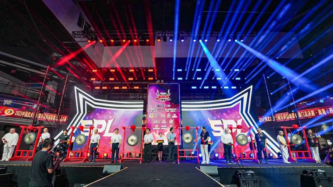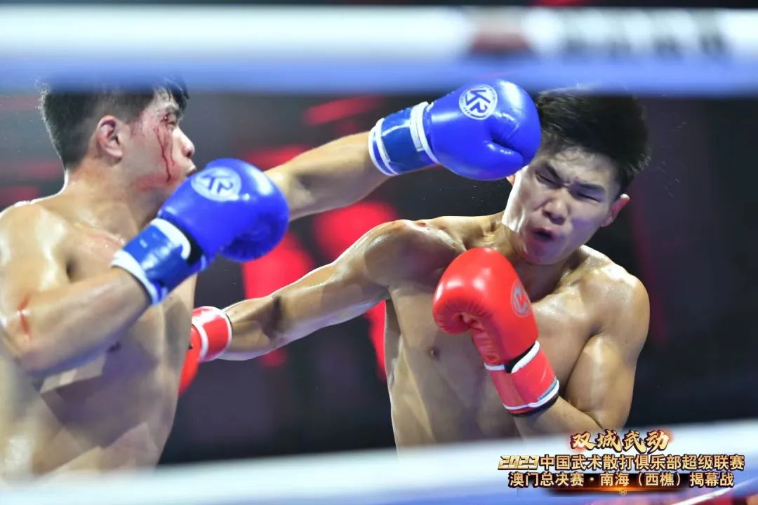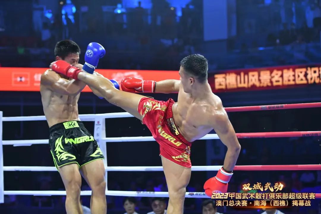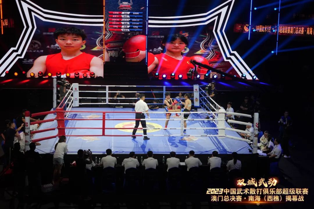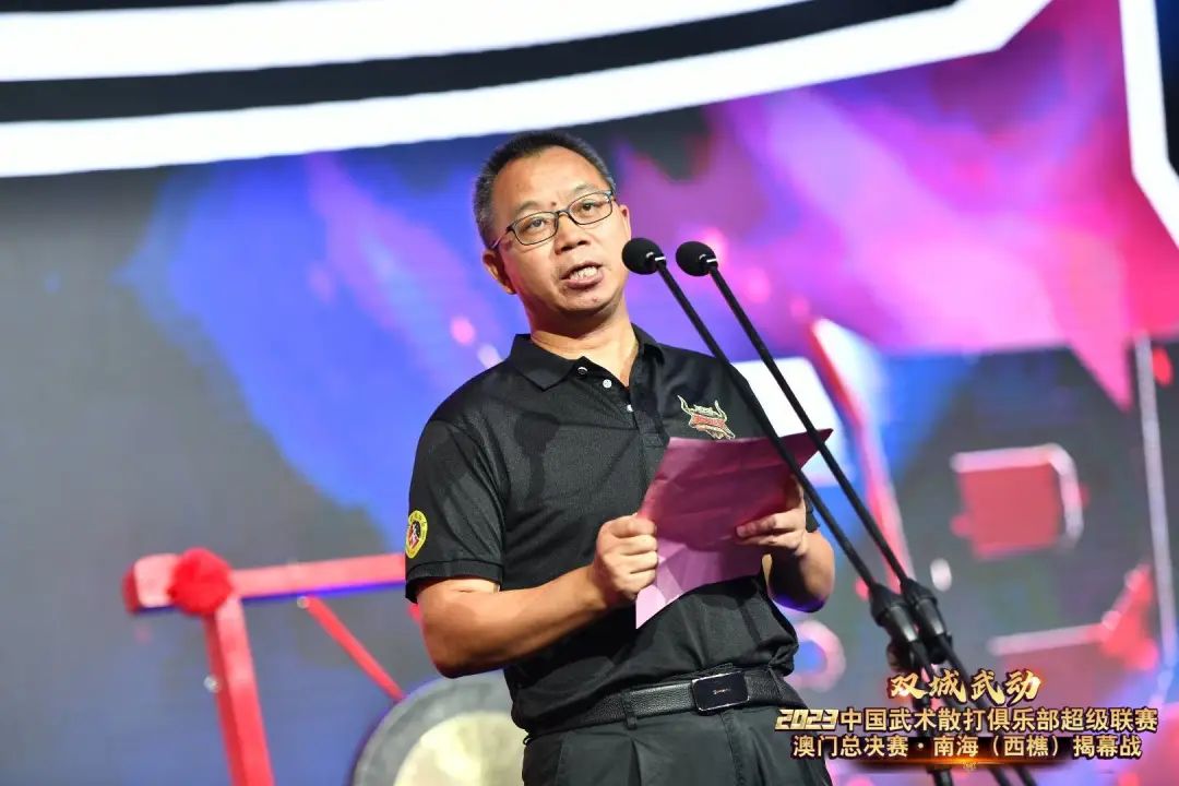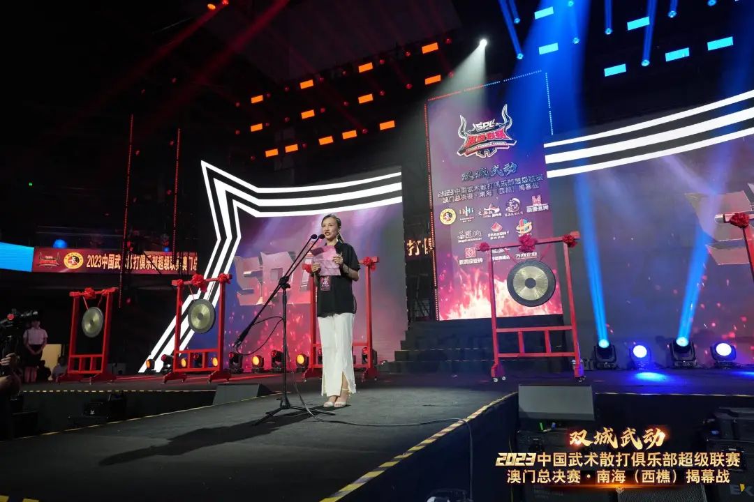 8月22日晚,“双城武动”2023中国武术散打俱乐部超级联赛澳门总决赛·南海(西樵)揭幕战在西樵飞鸿开赛。