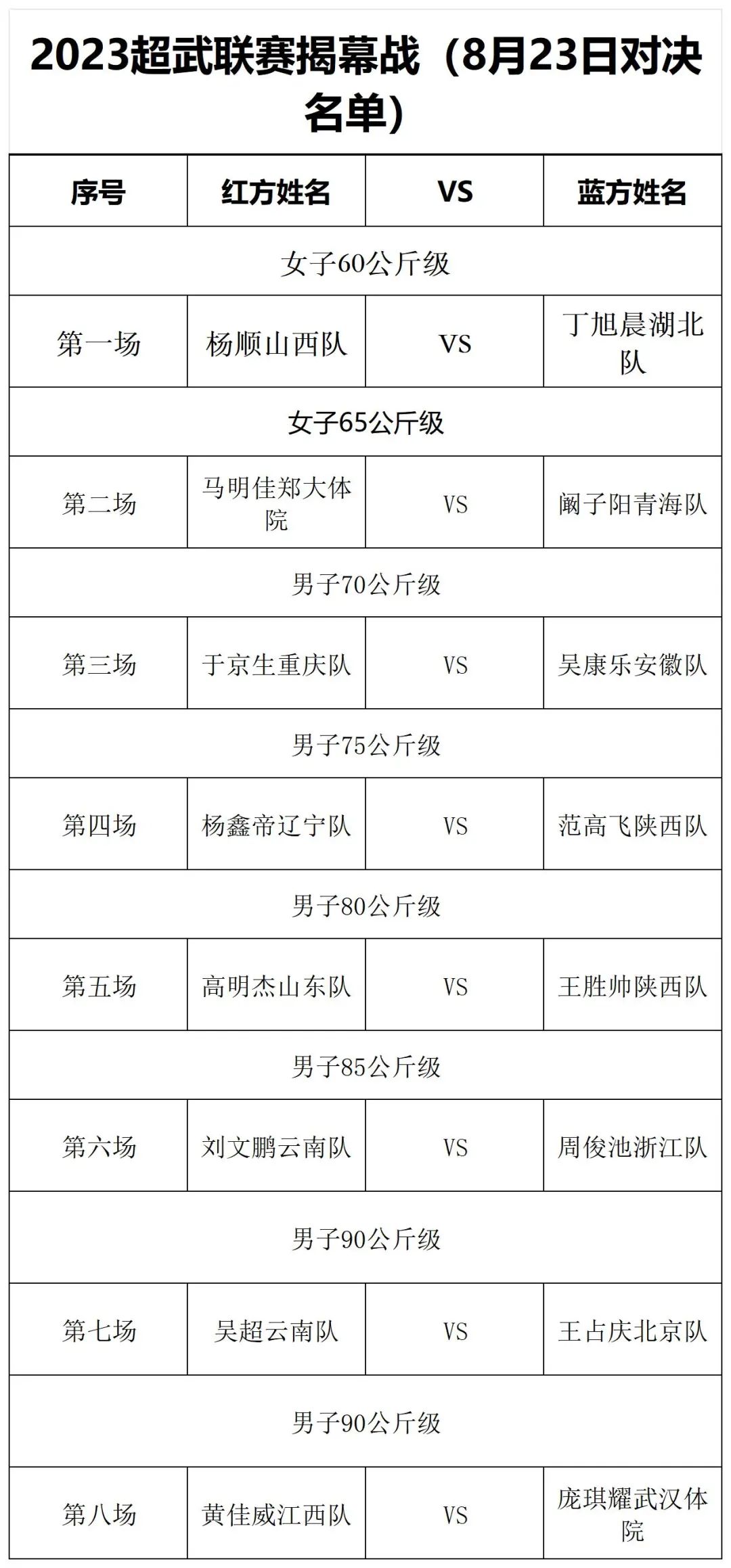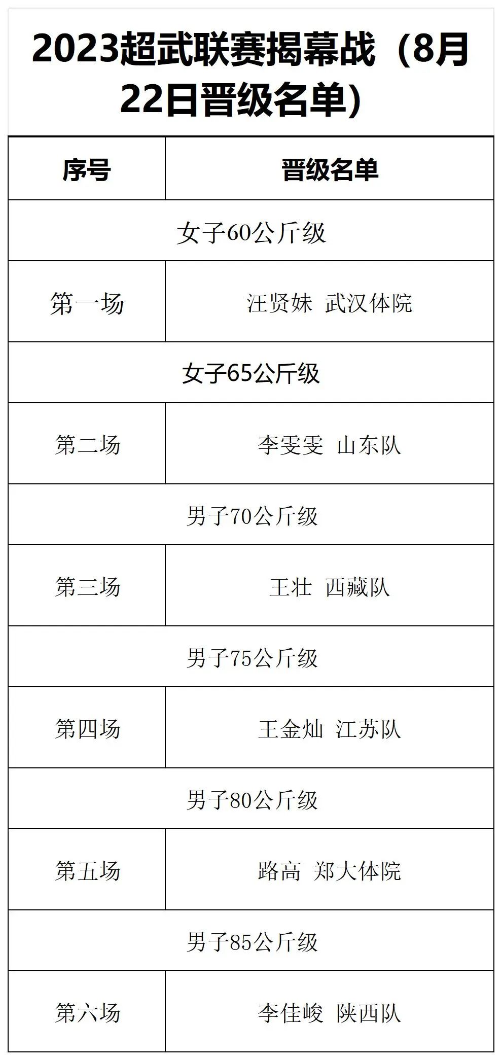 8月22日晋级名单及8月23日对决名单↓