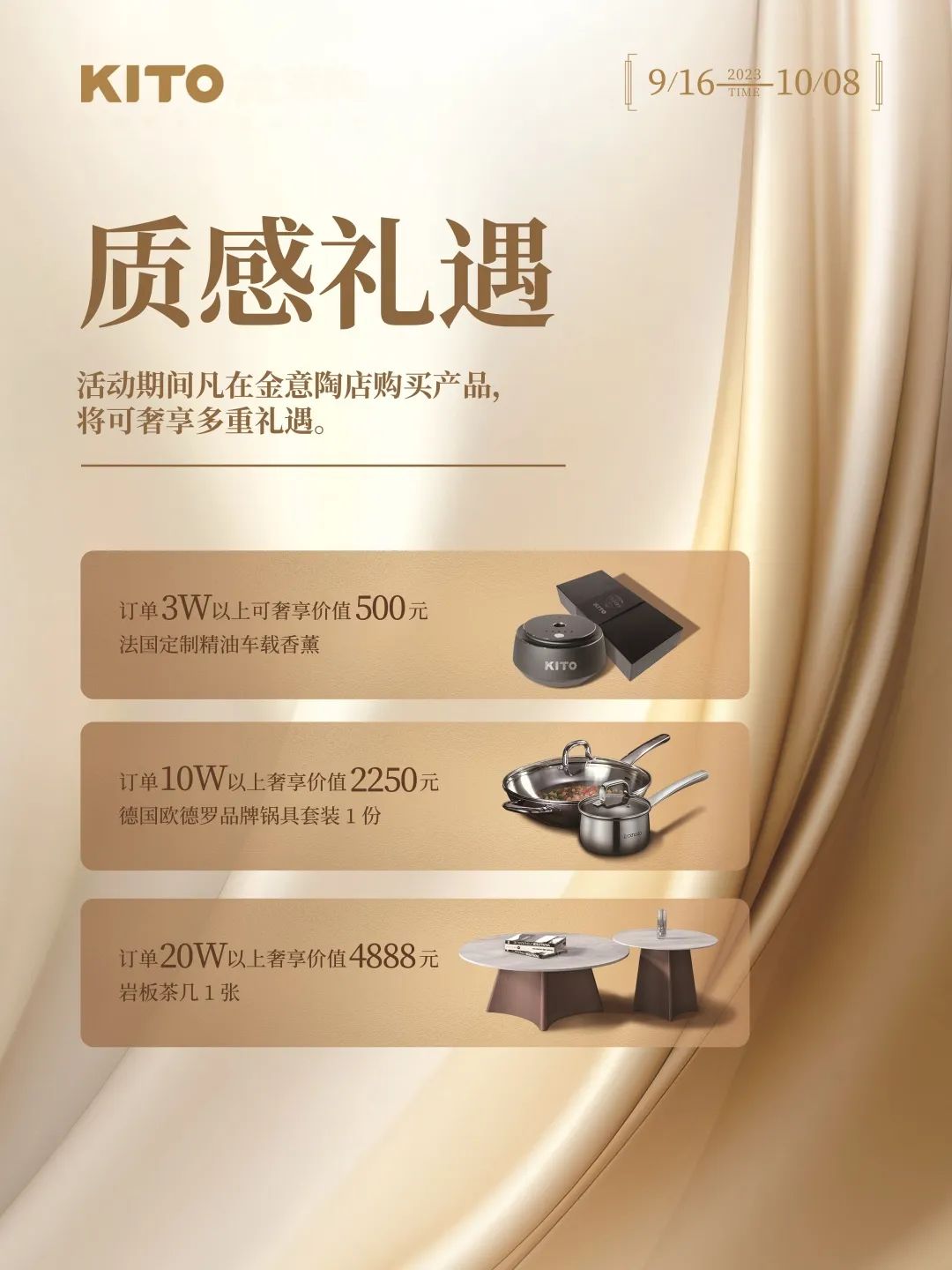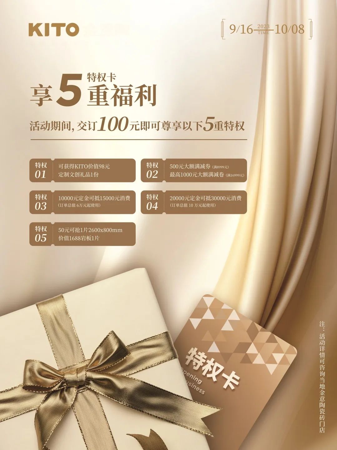 此次金意陶雅光陶瓷艺术节,不仅能以超值的价格购买丝路花语,还可享受其他的福利,如“特权卡享5重福利”“8888雅光省心配套餐”等。别犹豫!立即参加我们金意陶的雅光陶瓷艺术节,尽情享受购物的乐趣和实惠吧!
