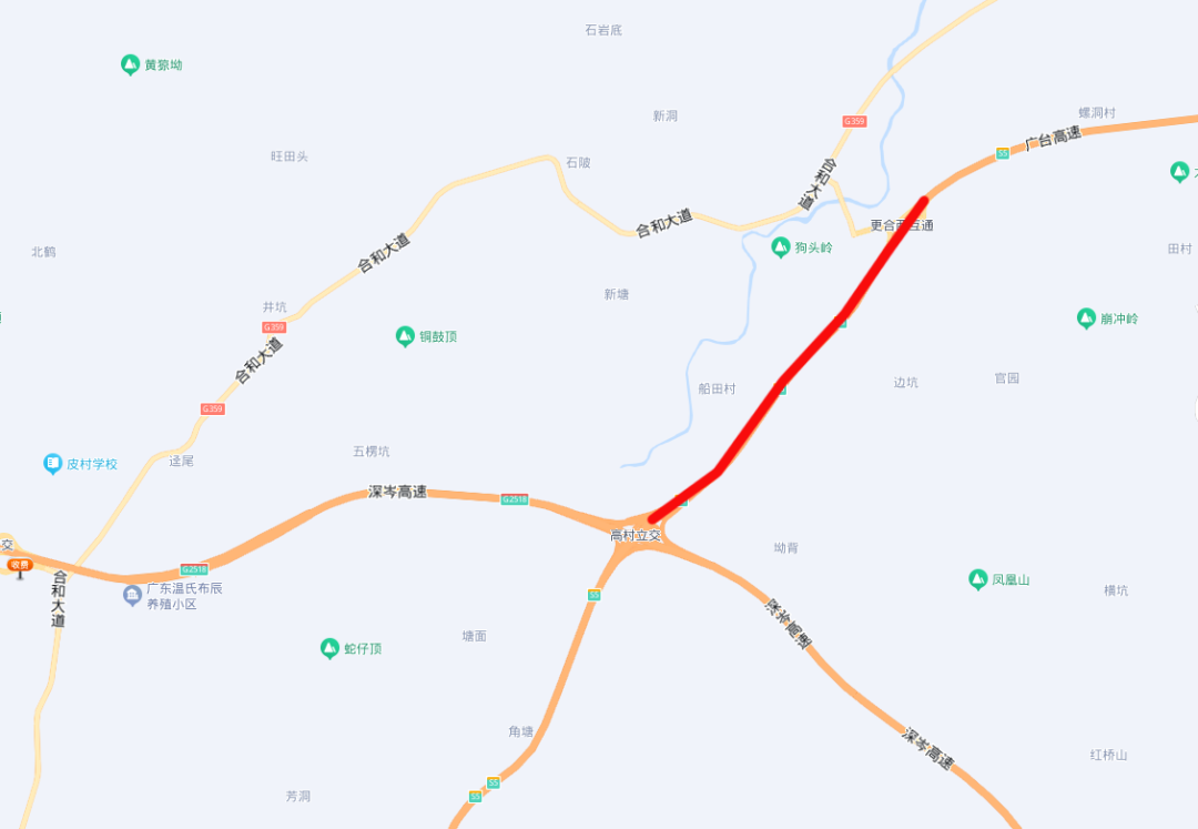 G359国道(合和大道)与广台高速更合西出入口交叉口。