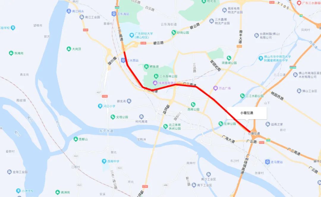 22 | 佛山市 | 二广高速公路 | G55 | 三水区乐平镇 | 三水区云东海街道 |