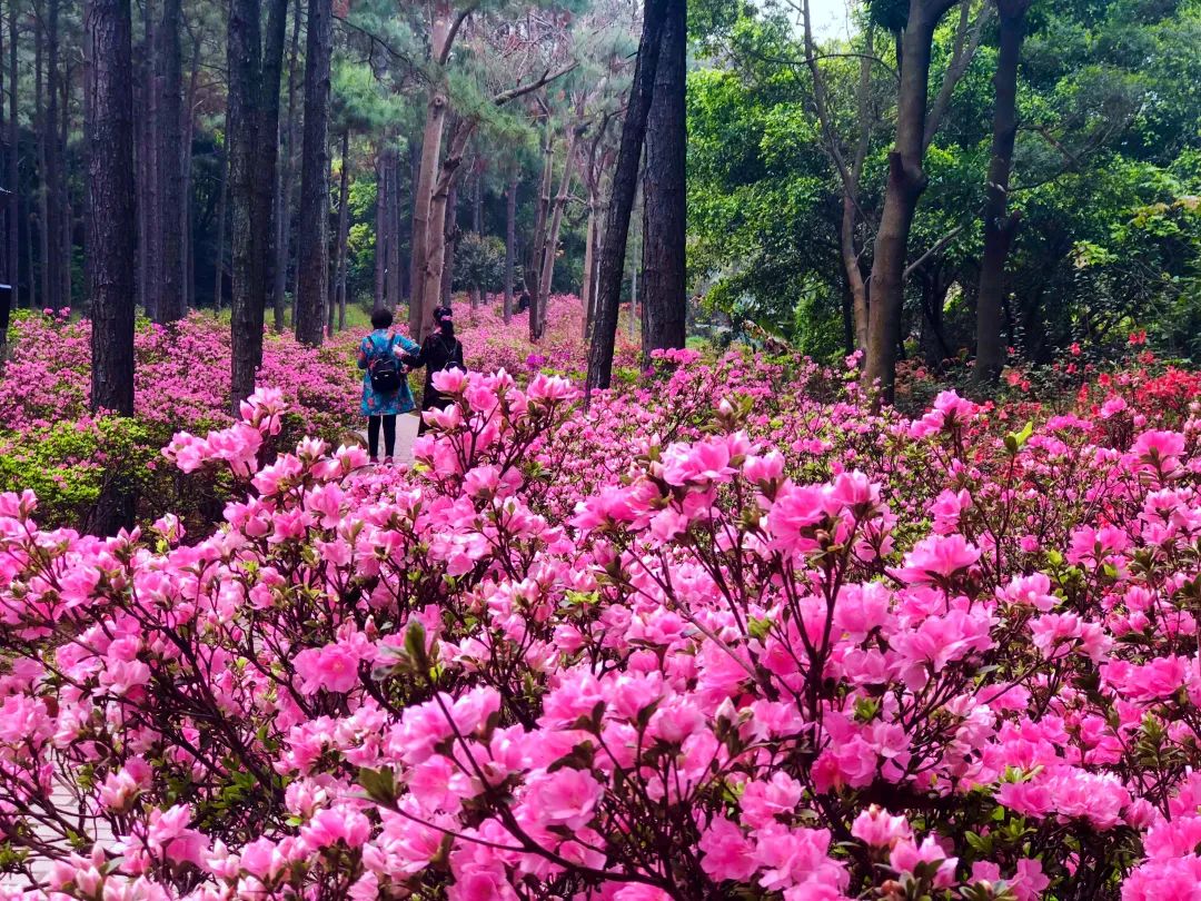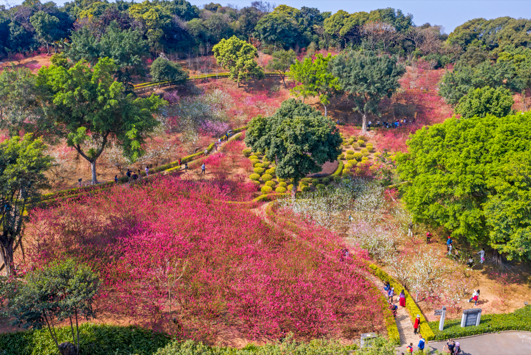西樵山桃花园,春节可到西樵山赏花祈福。