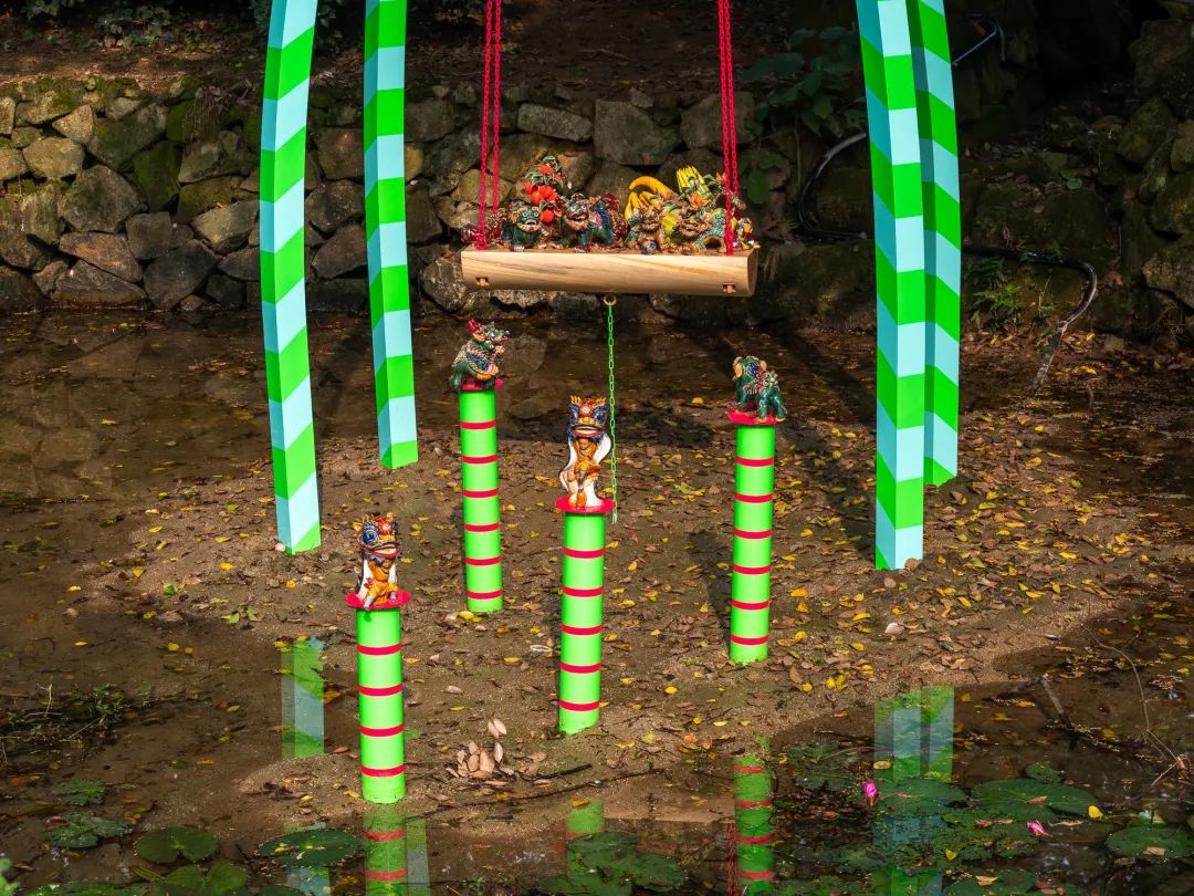 上岸!上岸!狮子们在庆祝。艺术家BAM 百安木创作的艺术项目《上岸》,柱子上的“神兽”选用自本地著名的陶瓷工艺品狮子,有些狮子已经成功上岸在庆祝,有些还在等待上岸的机会。
