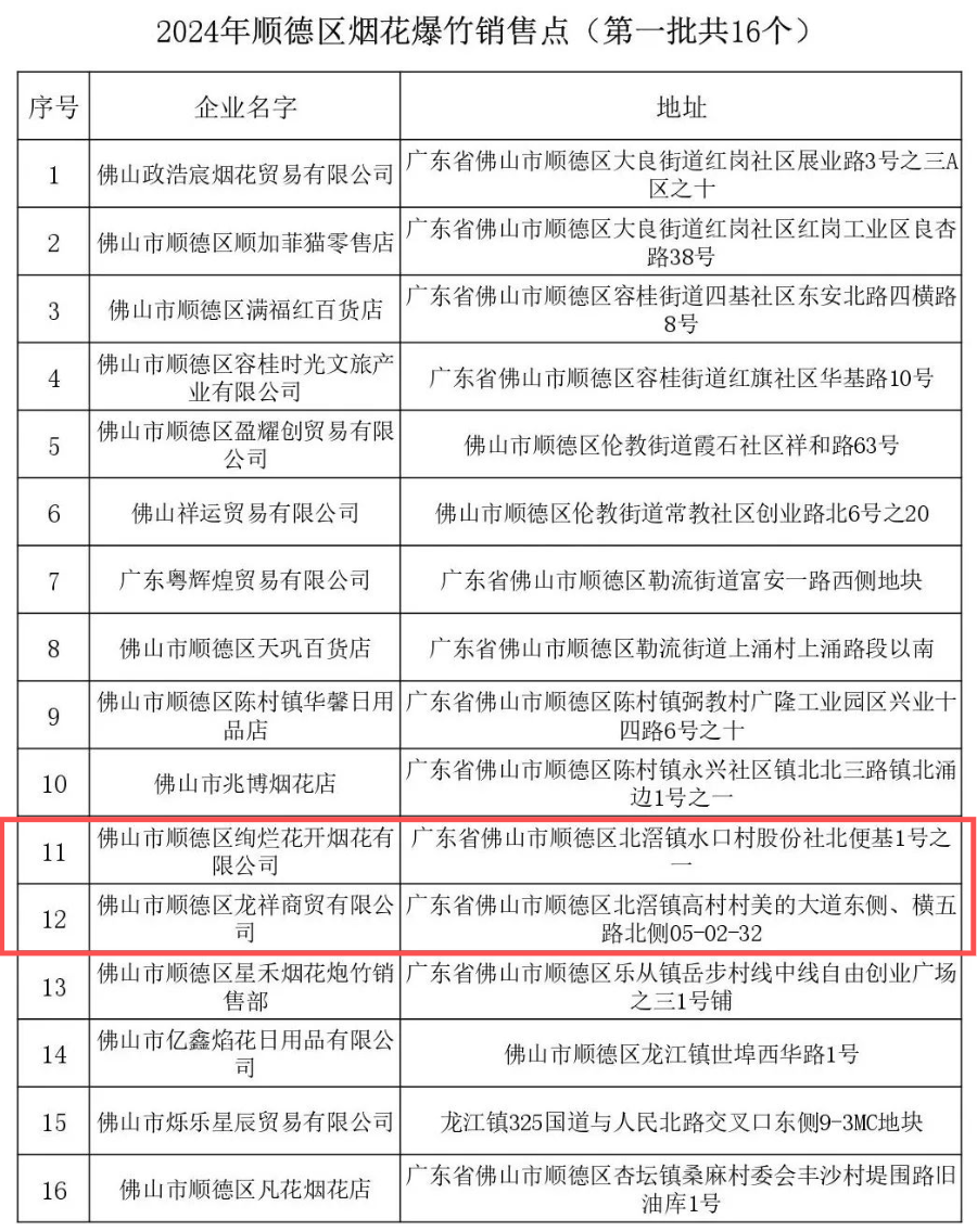 顺德区在2024年度设置34个燃放区域供市民在特定时间燃放烟花爆竹,其中北滘镇的3个燃放区域如下: