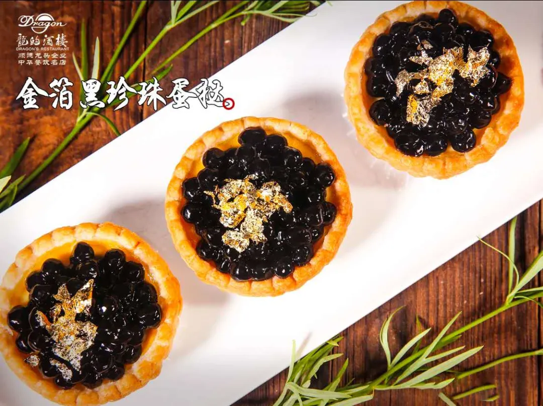鲍鱼挞、酥皮水牛奶蛋挞、金箔黑珍珠蛋挞等等,光是一个蛋挞就能做出这么多种做法。难怪在过年期间,顺德早茶也受到年轻人的热烈追捧,成为他们之间新的放假打卡方式。