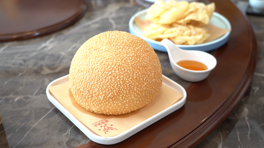 鹿茵酒店的陈永强介绍道,他们首创的鲍鱼挞寓意包罗万有,让大家在过年喝早茶时也能有个好兆头。而传统的煎堆,他也创造出加入南瓜粒的做法,让煎堆在本身外脆内糯的基础上,增加了南瓜的香甜口感。