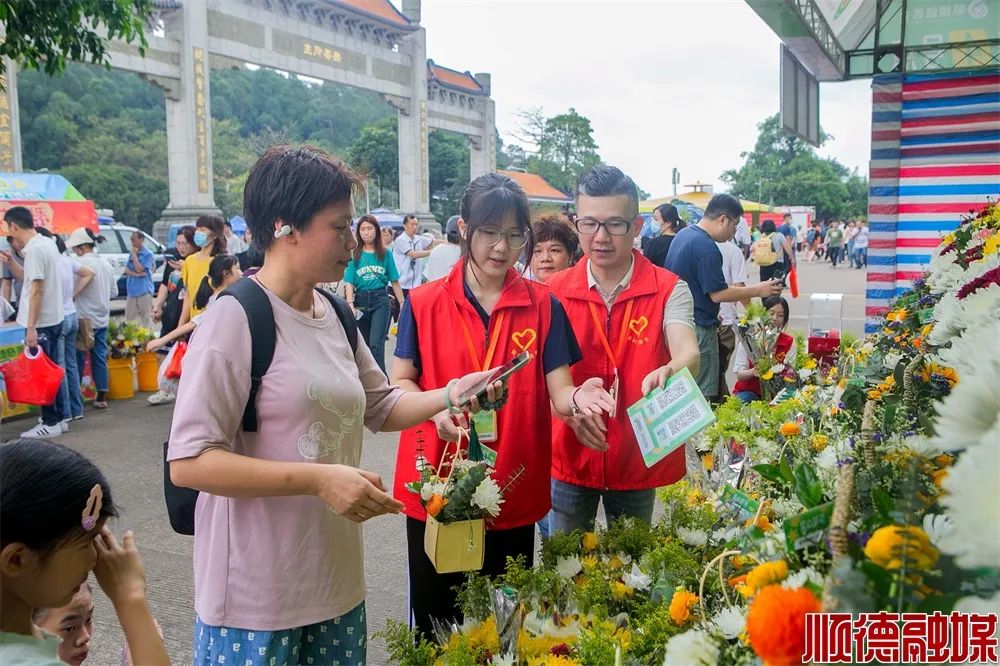 市民在顺德慈善会鲜花专卖点购买鲜花。