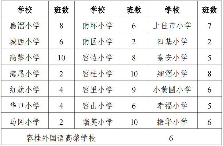 2024年容桂街道公办小学一年级计划招收132个教学班,具体如下:
