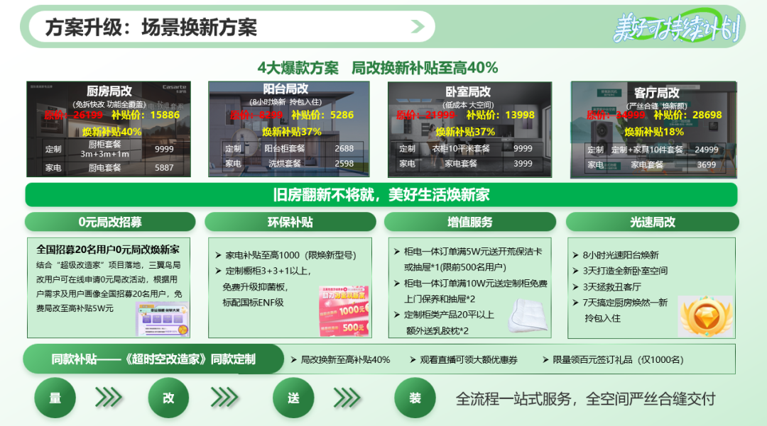 活动还推出局改补贴,至高优惠4620元;厨改补贴,至高优惠1420元;阳台改造补贴,至高优惠2000元;冰箱补贴,至高减优惠1200元。补贴详情请识别下方二维码查看:局改产品清单及补贴政策