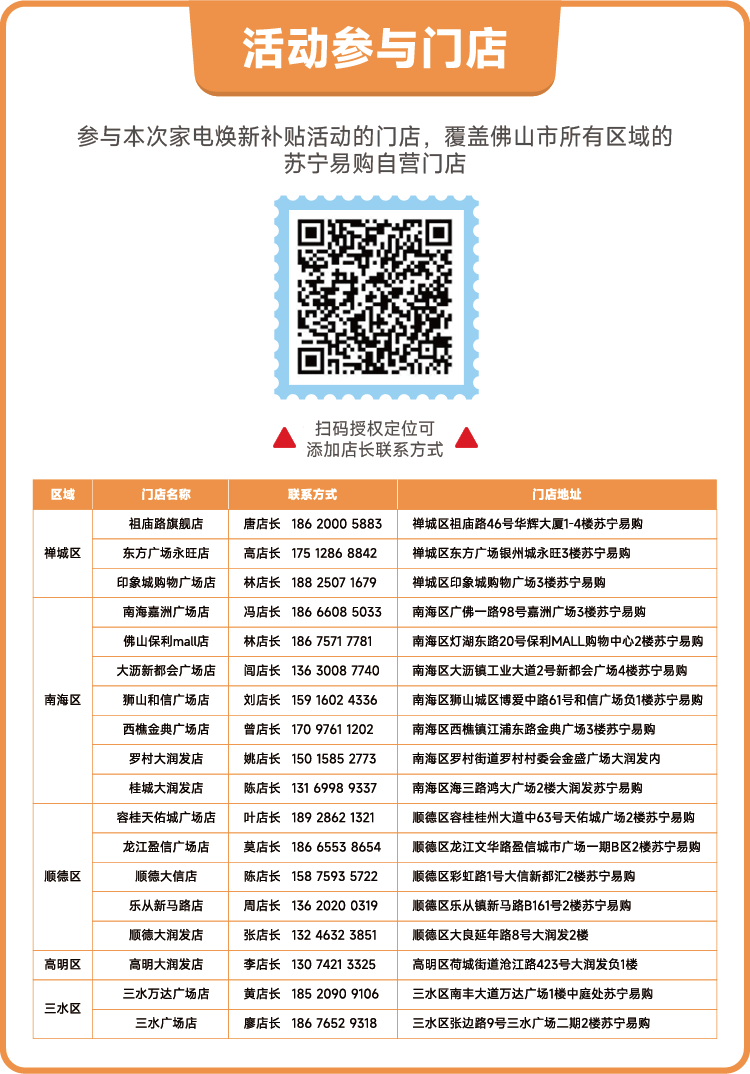 活动期间,在佛山市五区任意苏宁易购线下自营门店,通过门店购买“苏宁易购家电焕新家电库”机型的用户,可享受苏宁易购家电“以旧换新”补贴。交售旧家电的个人与购买人必须一致。>>点击查看详情焕新成交价=商品价格-(家电焕新补贴券+旧机回收抵扣价格)· 焕新家电补贴券