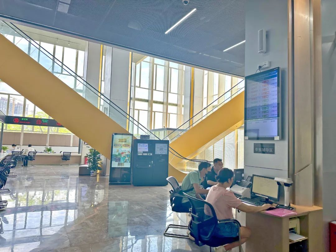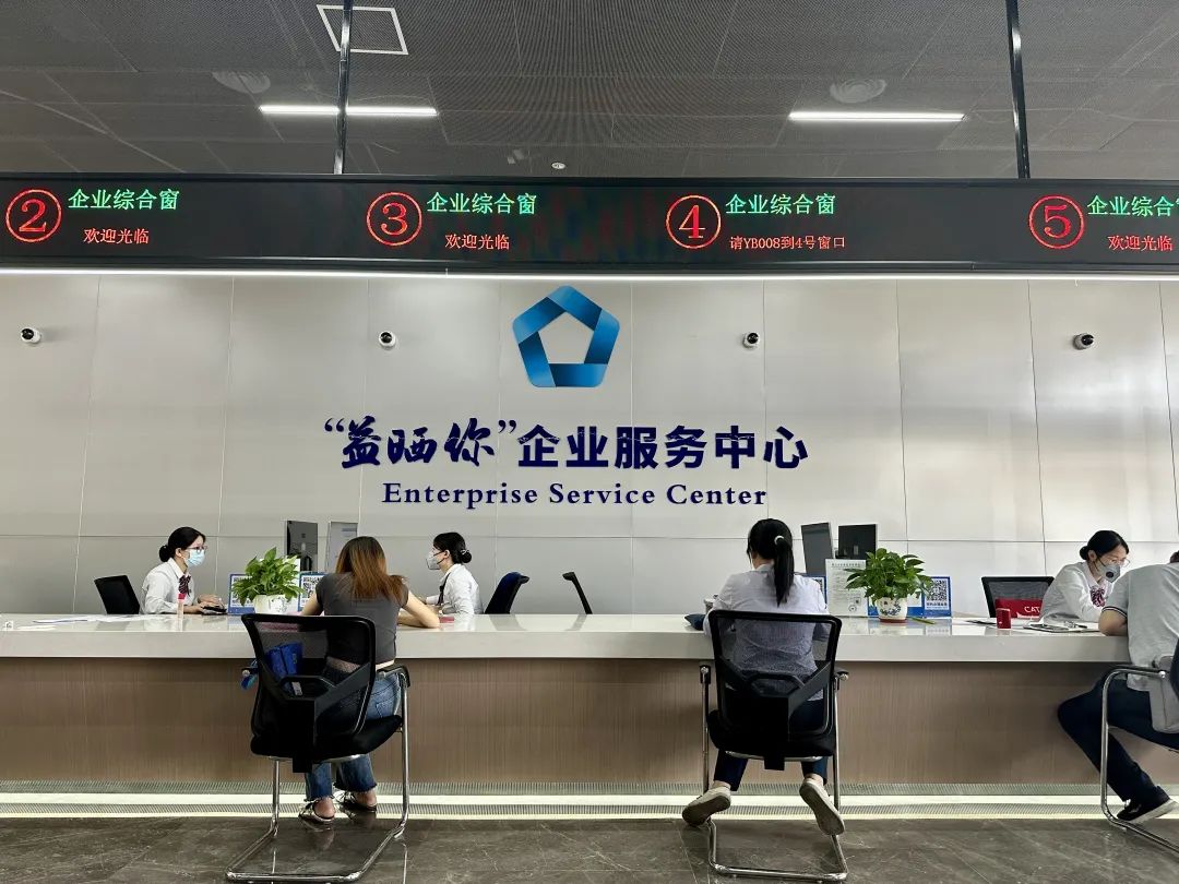 一楼“益晒你”企业服务大厅,开设18个服务窗口,受理证照联办、经营许可、工程建设类800余项涉企业务;