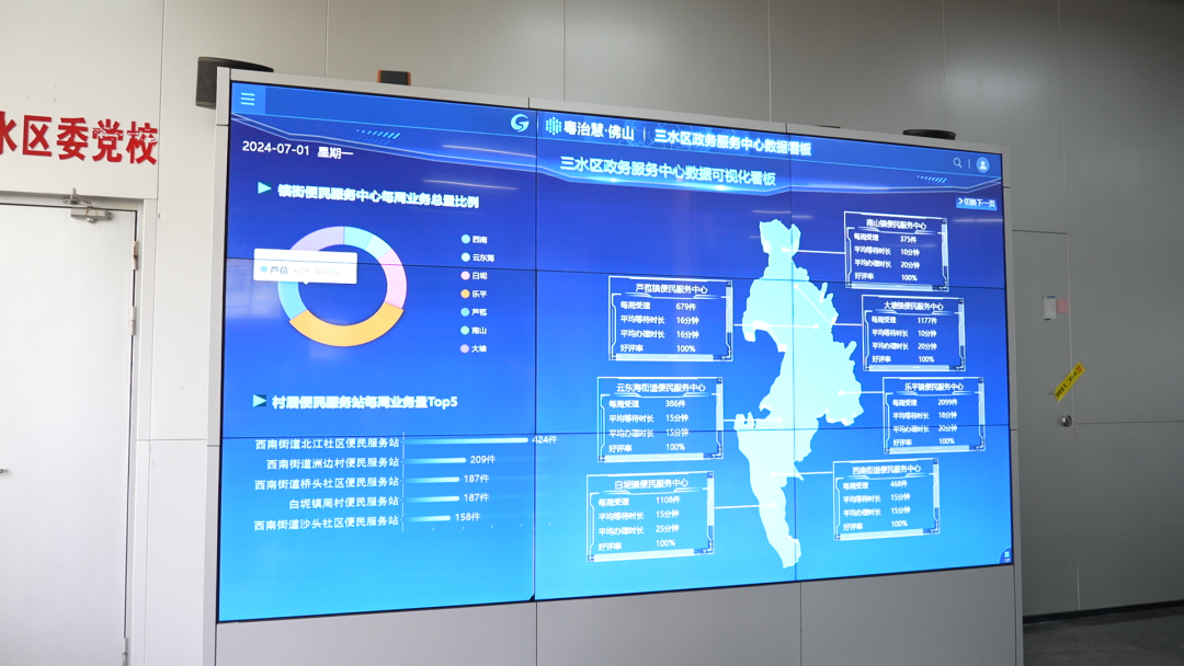 在三水区政务服务大厅增设了数字看板、电子政务地图以及双屏智能辅办等设备,以大数据为抓手管理区、镇、村三级政务服务体系,同时以客户端需求为导向提高群众的办事效率。
