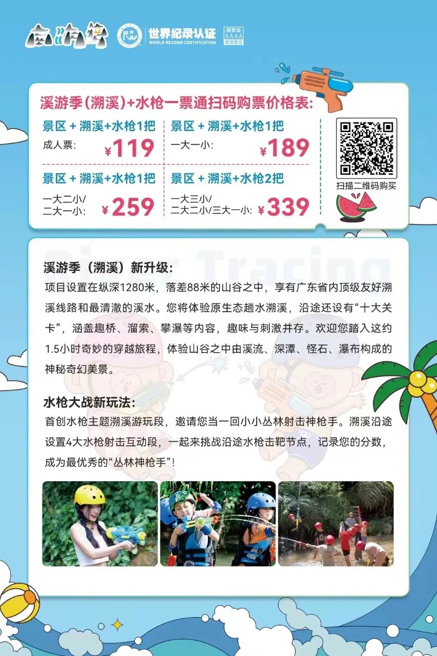 168.8元抢“2大1小/1大2小票”溯溪探险(全段)票+玩乐项目票!解锁冰镇式亲子溯溪探险!梦幻泡泡池、浑水摸鱼池、沙池城堡、射箭体验!