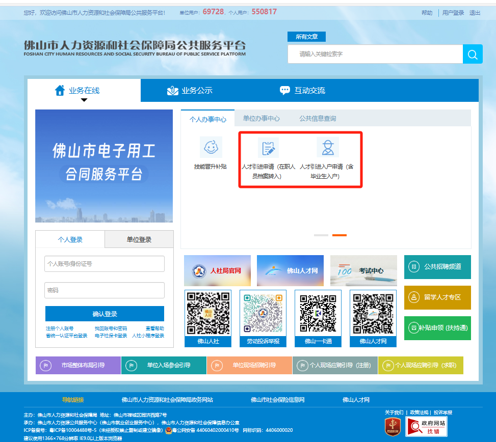 1、申请人在佛山市人力资源和社会保障局公共服务平台(https://ggfw.hrss.foshan.gov.cn)网上办结应届高校毕业生接收手续或在职人员档案调入手续后,再提交人才引进入户申请。