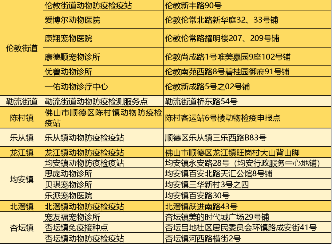 顺德区动物狂犬病疫苗注射由各镇(街道办)动物防疫检疫站负责,各动检站采取多种多样的形式为民服务,包括集中上门免疫、日常办公窗口免疫、每年组织工作人员到村到户进行免疫注射工作等。市民可以选择就近原则,主动带犬只到所在地的镇街狂犬病疫苗免疫注射定点单位接受免费免疫注射。