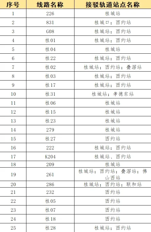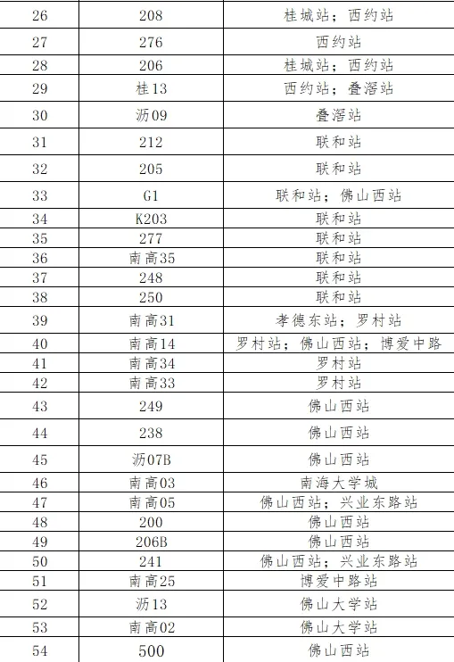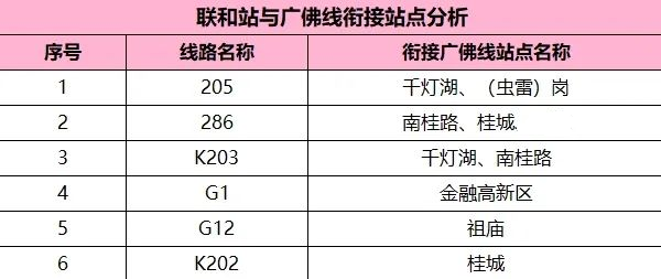 ● G1、G12、K203等6条公交线路接驳地铁广佛线相关站点;